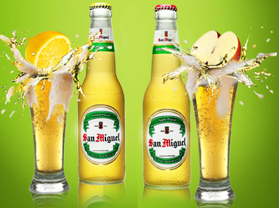 リンゴとレモンの2種類あります。リンゴテイストは、若い人達に特に好まれています。サンミゲルに味を加え工夫したことで話題性を与え多くの人が飲むようになりました。